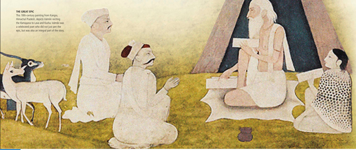 As with majority of the epics both in Indian and western traditions, the epic starts with an event of excruciating grief. The sage Valmiki witnesses a hunter kill one of a pair of mating krauncha birds (a type of curlew or sarus crane). Seeing the surviving bird’s grief, Valmiki is overcome with compassion and spontaneously utters a curse in metrical verse: