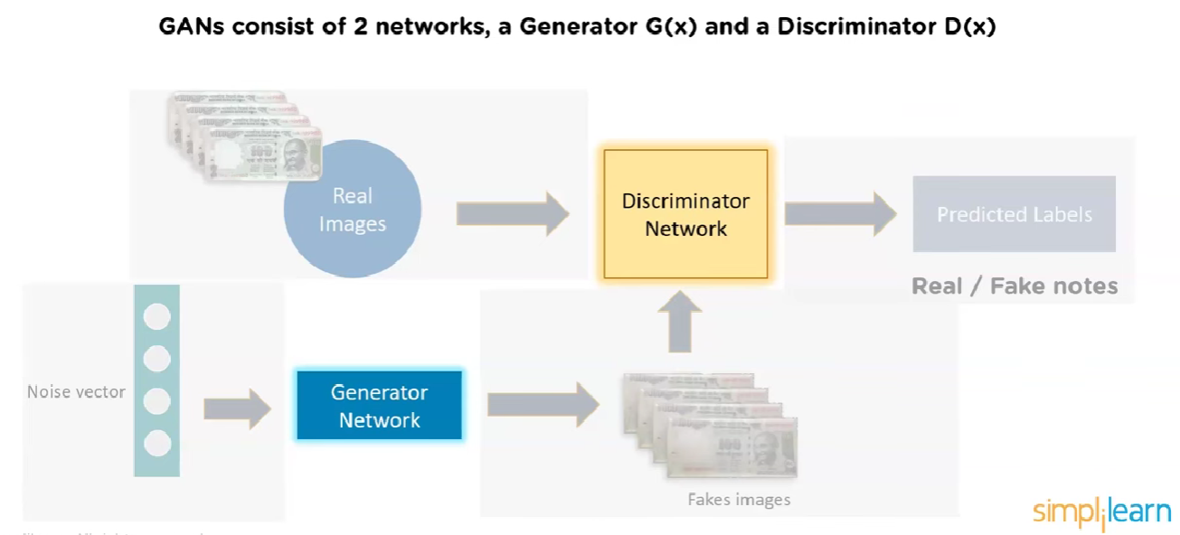 - Simplilearn - GAN - https://www.youtube.com/watch?v=MZmNxvLDdV0