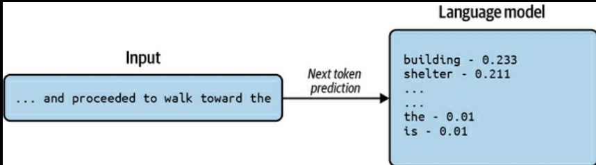 - Vocabulary - Set of all the tokens that the model knows. For example, if the model is trained with English language, it will have a vocabulary of all the words in English. Typically say if a vocabulary has 10,000 tokens. LLM will predict probability of all these 10m,000 tokens each time for the next token. Then it will select the token with highest probability as the next token.