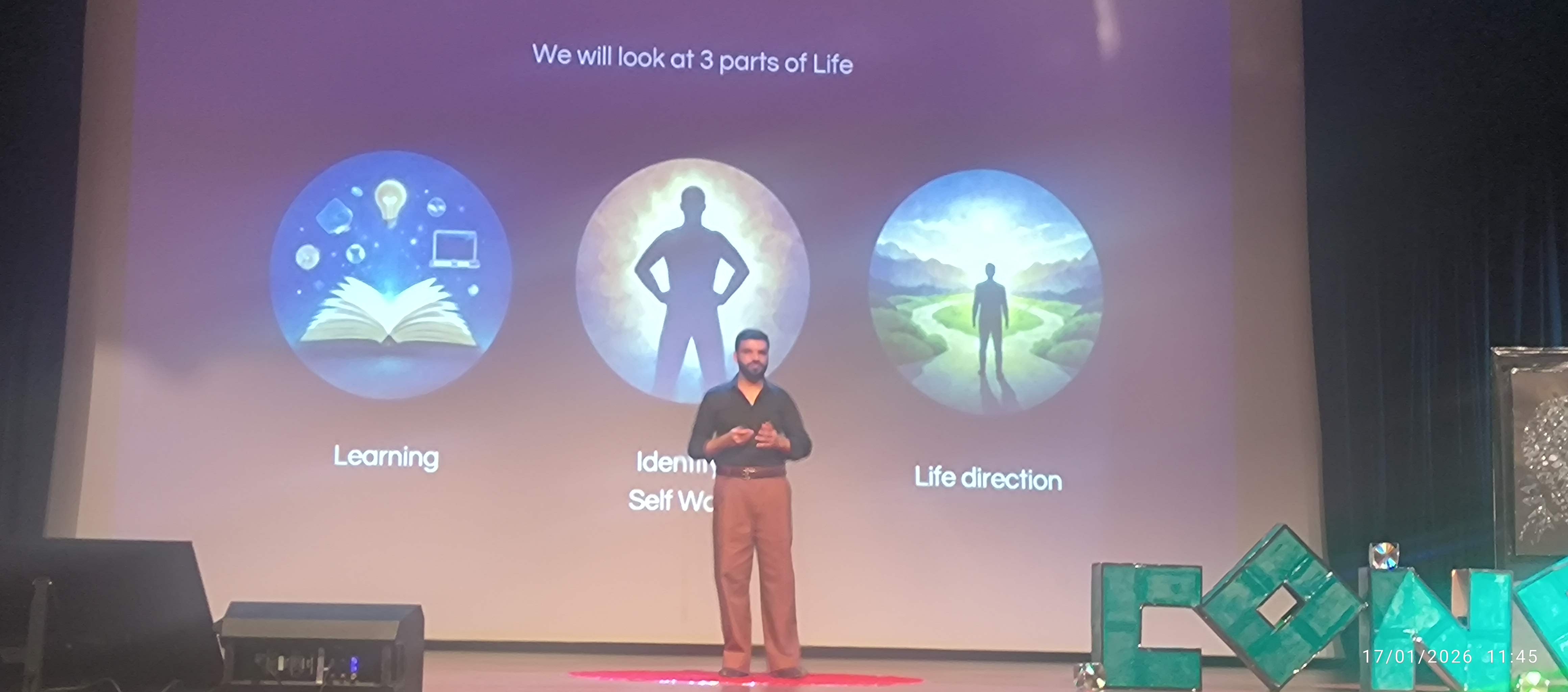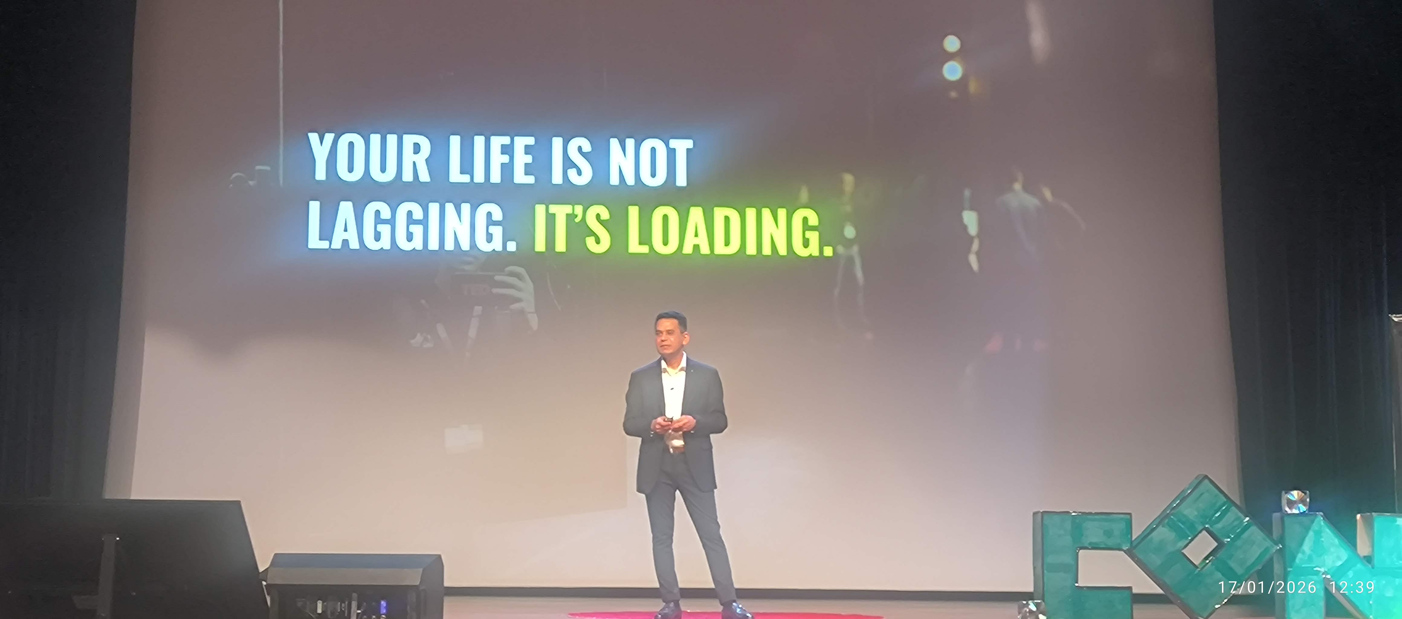 He asked some thought provoking questions to the audience, and made us think and jolt us from the inertia of our habitual thinking patterns of - An imaginary destination, that is not reached yet. Rather he was stressing on living life point to point, whole and complete and giving each moment its full due. He explained an example where in his company he does not chase a large big target, rather he has daily realistic targets that his team works towards and rejoiced at it.