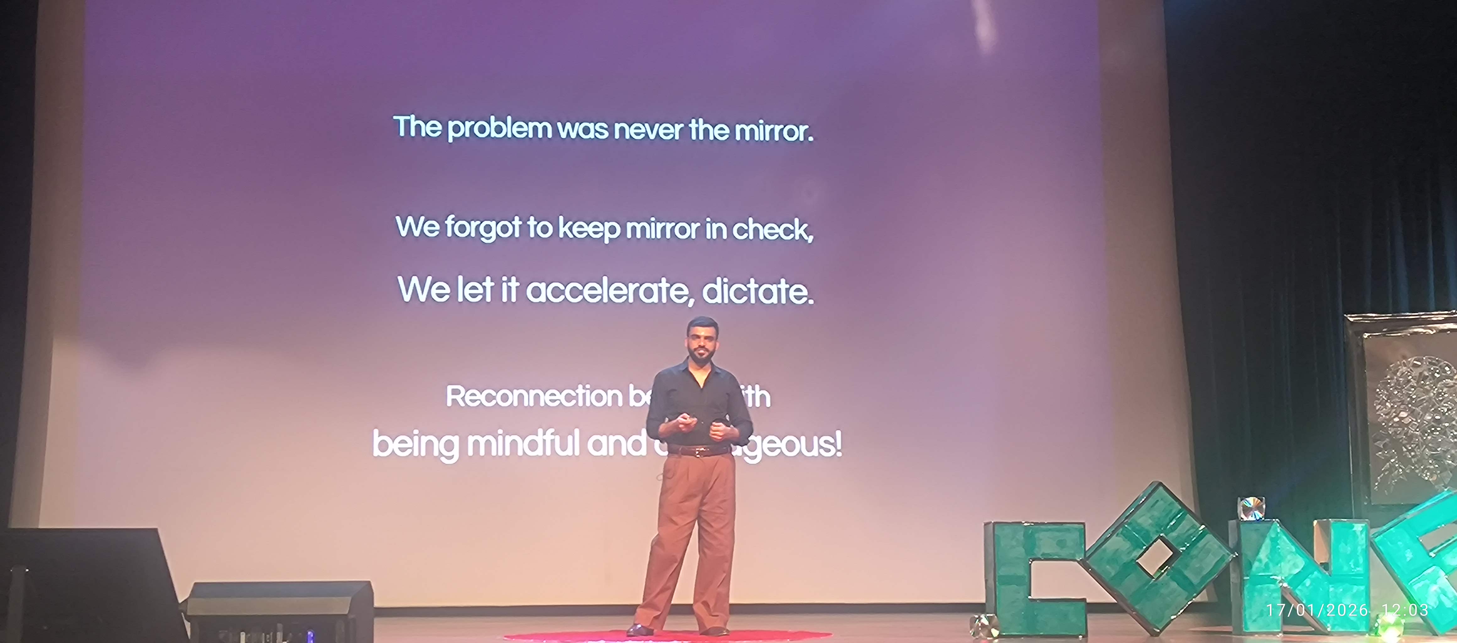 The seminar was about seeing our identity in the digital world, and the ramifications of that. How we get lost in the maze, and start identifying ourselves with things that are not really us! And how to reclaim our authentic self amidst the digital noise. It was known as the @Mirror_Glitch!